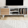 Stylish Design: The white body of the cabinet, oak-colored drawer fronts, and two shelf walls add a touch of elegance to your living room. The white legs further enhance its modern design.