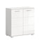 The Rootz Prego Chest of Drawers is a modern piece featuring a timeless design with a white high gloss finish. It offers 2 doors, 3 open compartments, and 4 shelves for easy organization and storage.