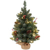 The Rootz 60cm Pre-Lit Mini Christmas Tree with Berries and Cones