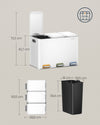 Elevate your waste management with The Rootz 3 Compartment Trash Can. This sleek and durable trash can with a 45L capacity comes in cloud white, crafted from steel with inner buckets made of PP plastic. The three compartments provide convenient sorting and organizing of your recycling and waste effortlessly.