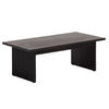 Introducing the Rootz Rectangular Coffee Table, a perfect blend of modern design and natural beauty. This table features an elegant slatted look, expressive wood grain, and is handcrafted from solid mango wood. Its black finish and protective varnish seal add a touch of sophistication to any room.