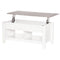 This pretty round coffee table with a wood look top and graphic black metal frame adds elegance to your home. Compact and practical, ideal for daily storage.