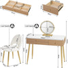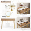 Adjustable LED LightingEquipped with a round mirror featuring built-in LED lights, this dressing table offers three color temperatures and a dimming function controlled by a smart touch button, ensuring optimal lighting for makeup application.