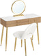 Ample Storage CapacityFeaturing a spacious tabletop and two smooth-running drawers, this dressing table offers ample space to organize your beauty products, accessories, and jewelry, keeping your essentials within easy reach and your space clutter-free.