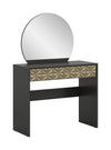 The Rootz dressing table features a high-quality MDF front panel with intricate floral milling. Its sleek black and Brown melamine body offers a sophisticated touch to any bedroom décor. With its large shelf and practical drawer, it provides ample space for beauty products. The table includes a generous makeup mirror for ease of use. Experience elegance and functionality combined in one stunning piece.