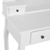 This exquisite vanity hairdresser set from Rootz combines elegance and functionality, beautifying any bathroom or bedroom. Crafted from high-quality MDF and solid wood, it features a smooth tabletop, 5 spacious drawers, a round 360° rotating mirror, and a comfortable padded stool. Ideal for organizing your cosmetics and enhancing your daily routines, this dressing table exudes charm and style.