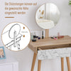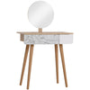 This Rootz dressing table is designed for efficiency and aesthetics. Its compact yet spacious design includes a large pull-out drawer for cosmetics and a height-adjustable round mirror. The sturdy, angled legs provide stability, making it a valuable addition to any room.