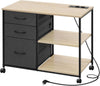 The Rootz File Cabinet with Charging Station Rolls, Metal Wood Material, Brown, Grey, Efficient and Mobile
