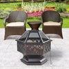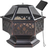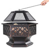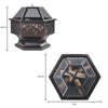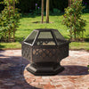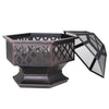 Large capacity: Thanks to the large capacity, this fire pit can contain a large amount of wood. The fire basket is equipped with a spark grid with handle and a poker. The wide base of the fire pit ensures high stability.
