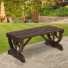 Bring this rustic-looking bench from Rootz into your outdoors for a beautiful and charming focal point. Made from high-quality fir wood, this piece is solid and sturdy, comfortably seating two people with enough room to relax. Slatted all over to prevent water and liquid build it, it has a carbonized finish all over which helps protect it from weathering. A wagon wheel on each end for a unique focal point.