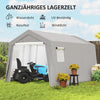 Introducing the Rootz waterproof device tent, designed for optimal storage of bicycles, motorcycles, and pool accessories. This spacious tent features a gable roof, ensuring efficient water drainage and protection against UV rays. Made from durable PE fabric and reinforced with a galvanized metal frame, this tent stands strong against the elements while providing good ventilation through its roll-up door and windows.