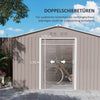 The Rootz garden tool shed offers an exceptional storage solution for your outdoor equipment. Crafted from robust metal, this tool shed is weatherproof and features spacious interiors with ventilation windows. The two sliding doors provide easy access, while the galvanized steel floor frame ensures stability. Ideal for storing garden tools, bicycles, and more, it keeps your belongings safe and organized.