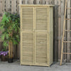 Create harmonious order in your garden again with this practical tool shed from Rootz. The shed is fitted with shelves and offers ample space for many tools and equipment. Rakes and shovels also find enough space there and remain safely protected from the rain. The housing made of lacquered fir wood is robust and weatherproof. Two lockable doors secure your garden tools and the louvered doors ensure optimal ventilation of the interior.
