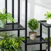 DURABLE METAL CONSTRUCTION: Our free standing plant shelf is constructed with a sturdy frame made of painted frame which is fade resistant and rust proof. The shelves made of metal mesh allow excess water to drain off easily and dry quickly.