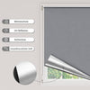 Discover the Rootz Dilment roller blind in sleek gray, crafted from 100% polyester featuring a silver thermal layer. Designed for darkening rooms effectively, it offers sun and UV protection while enhancing privacy. The installation is a breeze with the Klemmfix system, requiring no drilling. Perfect for various spaces, it ensures energy efficiency with summer cooling and winter insulation capabilities.