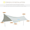 This large-format rain cover with awning 5.55L x 5.5W m allows you to protect a large area from UV rays from the sun and rain. Ideal for camping, picnics, or trekking!