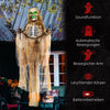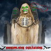 Unleash spectacular scary moments with the Rootz Animated Halloween Decoration: A ghostly skeleton, whose arms can be twisted at will, reacts to touch or screams. This sinister figure swings its arms, glows green on its head and reddish on its chest, and lets out menacing howls - perfect for any outdoor Halloween decoration.