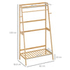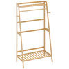 This bamboo clothes rack is a stylish and practical solution for organizing your space. Featuring 2 shelves, 2 hooks, and a clothes rail, it adds sophisticated storage for shoes, bags, and apparel, making it perfect for any room in your home.
