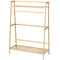 This coat stand is a stylish and practical addition to your room. With 9 hooks and 2 shelves, it offers ample storage for coats, scarves, and hats. Made of durable MDF and steel, it combines elegance and functionality effortlessly.
