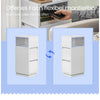 The Rootz narrow bedside table is a stylish and functional addition to your bedroom. Featuring two spacious drawers for storage, an open compartment for easy access, and a sleek cloud white finish, this table complements any decor. Its durable construction from MDF and wooden chipboard ensures longevity while offering a max static resilience of 45.4 kg on the tabletop.