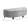 Create an instant focal point for your house with this french inspired semi-circle bench from Rootz. Lush velvet-touch polyester fabric and classic turned legs add vintage glamour to your home setting. Button-tufted seat enhances support tightness and accents its elegant style. Finished with a cushioned lift-up lid, which reveals a handy storage area.