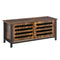 - Four compartments and a center cabinet offer a mix of open and discreet storage. The door is easy to open with a lock