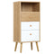 - The Scandinavian style cabinet with two-tone construction adds more visual interest