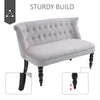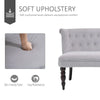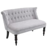 - Scrolled end, with carved legs and button tufted back for vintage elegance