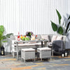 With the five-piece seating group from Rootz, you can beautify your terrace, garden or even your conservatory. The plastic mesh in rattan look is stable and weatherproof. The dining table has a tempered glass top. In this seating area, you can make yourself really comfortable with family and friends.