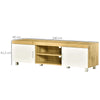 The modern TV stand with media shelf from Rootz is a real eye-catcher with its elegant design made of natural oak and white wood grain. The TV console comes with 2 door cabinets, 2 storage shelves and a spacious tabletop that offers ample storage space to organize your accessories and keep your living room tidy. The TV stand is very user-friendly thanks to the cable passage on the back.