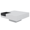 This modern coffee table combines practicality with style, featuring a high-gloss black and white surface and dimensions of 72L x 72W x 30H cm. The removable storage box adds convenience, while the multi-colored LED light strip creates a stylish atmosphere in any room.