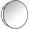 Enhance your home with the Rootz round wall mirror featuring a black metal frame and 2 convenient shelves. Perfect for bathroom, bedroom, or hallway.