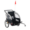 Always bring your children safely to their destination! This great bike trailer can accommodate up to two small children up to 9 kg. Thanks to its stable frame, reflectors and flag, your little ones will always have a particularly safe ride. The protective, roll-up cover and mosquito net also protect against precipitation and annoying insects. Equipped with a practical universal hitch, the trailer can be coupled to almost any bicycle.; DANGER! 1. The driver must be older than 16 years; 2. Children must be able to hold their heads up with their helmets on; 3. Do not exceed the maximum speed of 10 MPH (16 Km/H). Do not exceed speed of 8 mph (13 km/h) and reduce speed to 3 mph (5 km/h) when turning; 4. Do not make any modifications to the trailer; 5. Always instruct children NOT to rock, hop, lean, or stretch limbs outside of the booth; 6. The trailer/jogger/stroller is not suitable for walking or skating; 7. Only use it on slippery roads. Do not drive over curbs, potholes or off the road. Avoid bumps and holes.