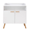 Introducing a contemporary and easy-to-maintain baby room set from Rootz. This complete set comprises a spacious wardrobe, a snug cot, and a functional changing table, all presented in pristine white melamine, ensuring both style and utility for your baby's space.