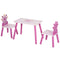 This Rootz children's desk set features a stylish desk and chair designed for kids aged 5-8. Made from safe MDF and pine wood, it includes a drawing area and ample storage options, all while ensuring rounded edges for safety. Create a productive environment for reading, painting, and playing, all wrapped in an appealing pink and white design.