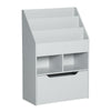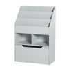 The Rootz Regal Multi-Rangement bookshelf features a stylish gray finish, providing ample storage with 3 shelves, 2 compartments, and a spacious drawer. Perfect for organizing toys, books, and decor, this versatile piece effortlessly enhances any children's room or office corner while ensuring safety and ease of use with its tilting protection and durable MDF construction.