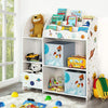Sort it up: Books, toys, you name it! 3 compartments for books, 3 small compartments and a large storage space for stuffed animals and 2 fabric drawers for building blocks. In short, with this toy organizer you can keep everything neatly.