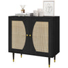 The Rootz Buffet Kitchen Furniture Storage with Rattan Front and Double Doors in Boho Style