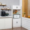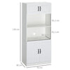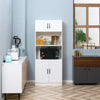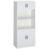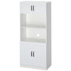 MORE STORAGE SPACE: The 4 shelves of this tall cabinet offer plenty of space for dishes, pots, food or plastic containers. The open center can accommodate kitchen appliances such as a microwave or coffee maker. There is order behind the 4 doors and the contents are protected from dust. For larger items, you can adjust the adjustable shelves in the lower cabinet to suit your needs.