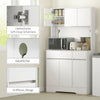 Revamp your kitchen with The Rootz Kitchen Cabinet, featuring an open work surface for easy access and utilization. The configuration of 6 cupboard doors, 2 drawers, and adjustable shelves offers ample storage while ensuring a clutter-free kitchen. Crafted in white chipboard, it seamlessly blends into any modern home. Ideal for organizing kitchen appliances and accessories, this elegant cabinet optimizes both space and efficiency.