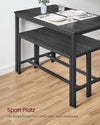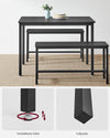 Enhance your dining experience with the Rootz Dining Table Set, featuring a chic ink black color combination. Crafted from chipboard and steel, the set includes a table and two benches, ideal for small spaces. The table measures 70 x 110 x 75 cm, while each bench is 30 x 97 x 50 cm. With a total weight of 27.5kg, this set can support up to 100kg.