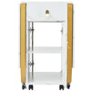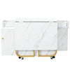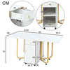 This elegant and functional foldable dining table in white and gold is perfect for any kitchen. Measuring 150l x 80b x 76h cm, it serves as a dining table, desk, or storage solution. With two drawers for versatile storage and a stylish design featuring gilded handles, this table enhances any space while protecting your floors with its roller feet.