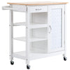 This beautiful two-tone white kitchen cart will easily fit into your home. It offers a practical and elegant rolling kitchen trolley with multiple storage options like a drawer, shelves, and a tea towel holder.