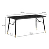 Elevate your dining room with this large modern dining table featuring a marble look rectangular top. Suitable for up to ten people, it exudes a noble flair with black marble top and robust metal legs in black and gold.