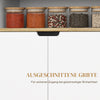 Multiple storage options: Includes countertop, open compartment, shelves, and cupboard