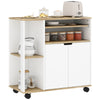 The Rootz Rolling Kitchen Trolley with Storage Cabinet in White- Brown