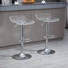 This beautiful set of 2 contemporary design bar stools will add an elegant touch to your home. The transparent acrylic seat and chrome-plated metal frame create a modern look. These stools are height-adjustable, 360° rotatable, and feature footrests, making them both stylish and comfortable.