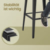 These stylish Rootz bar stools blend functionality with aesthetics, featuring a black color. Crafted from durable wooden chipboard and steel, they offer reliable support. Ideal for modern homes or bars, each stool showcases a comfortable seating area and robust footrests, ensuring a luxurious experience.