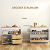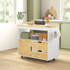 Upgrade your kitchen with the Rootz kitchen trolley. This rollable kitchen island features a rubberwood worktop, drawers, compartments, and a cabinet, all in a sleek white finish.