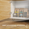 Smooth Mobility: Soft-close door, grooved handles, and towel rail for easy handling and four universal wheels for mobility.